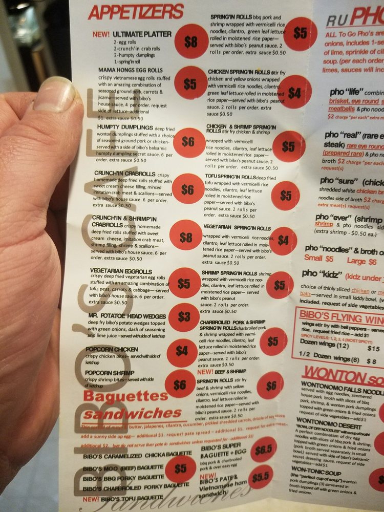 - Baguette Sandwiches: Don't miss the Bibos Charbroiled Porky Baguette, offering a perfect balance of flavors at just $7.00.