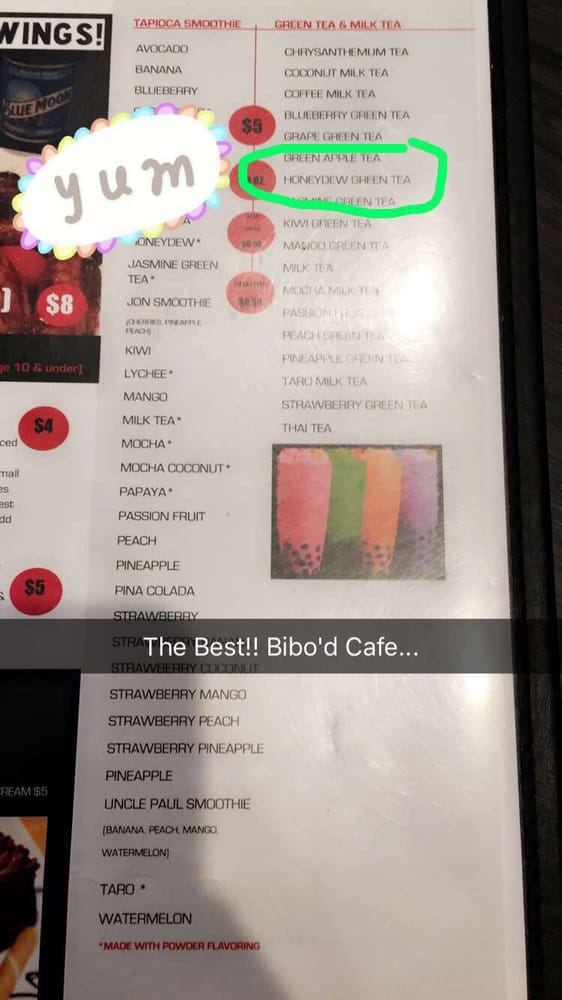 - Beverages: Pair your meal with refreshing options like the Bibos Iced Coffee or Jasmine Green Tea.